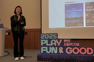 한국금융경제신문=김성훈 기자 | 스마일게이트가 ‘지스타(G-STAR) 2025’가 열린 부산 벡스코(BEXCO) 컨퍼런스홀에서 제4회 ‘플레이 펀 앤 굿’ 포럼을 개최했다. 이번 포럼에는 정덕현 문화평론가와 한재영 로드나인 이사, 임바다 바다게임즈 대표, 옥성아 비타콘 대표, 도티(나희선) 샌드박스 네트워크 대표가 연사로 참여했다.14일 팬(Fan)과 컨트리뷰션(Contribution)의 합성어인 ‘팬트리뷰션’을 주제로 열린 이번 포럼에서 첫 연사로 나선 정덕현 문화평론가는 지금의 팬덤은 단순한 팬으로서 콘텐츠를 즐기는 차원을 넘어
